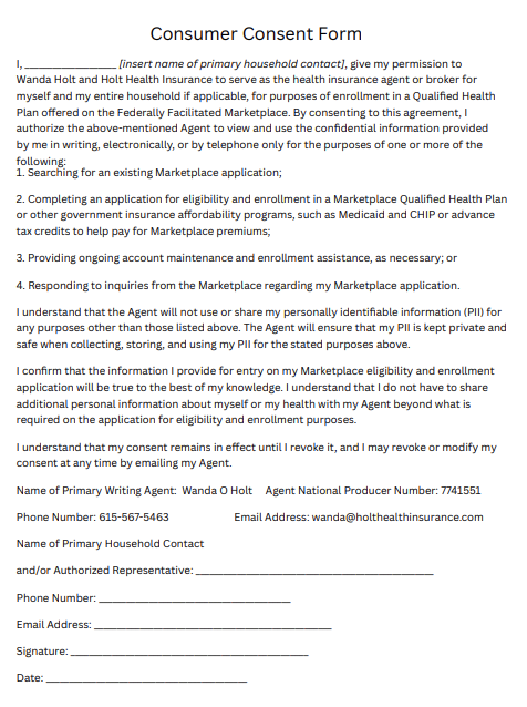 By law, all health insurance agents must have your consent before handling your personal information or discussing health insurance. When you schedule an appointment with us, you’ll be asked to complete this form.